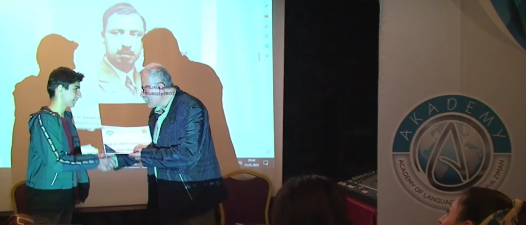 Di bernameyê de kursîyerên ku di sala 2024an kurs serkeftî qedandine sertîfîkayên xwe hilgirtin. Sertîfîkayên xwendekare ji alîyê nivîskar û lêkolînerê zimanê Kurdî Birêz Xalid Sadînî, Mamoste Bedrettin Wanî û nivîskar û Mamoste Şehvan Karakoyun ve hat dayîn.