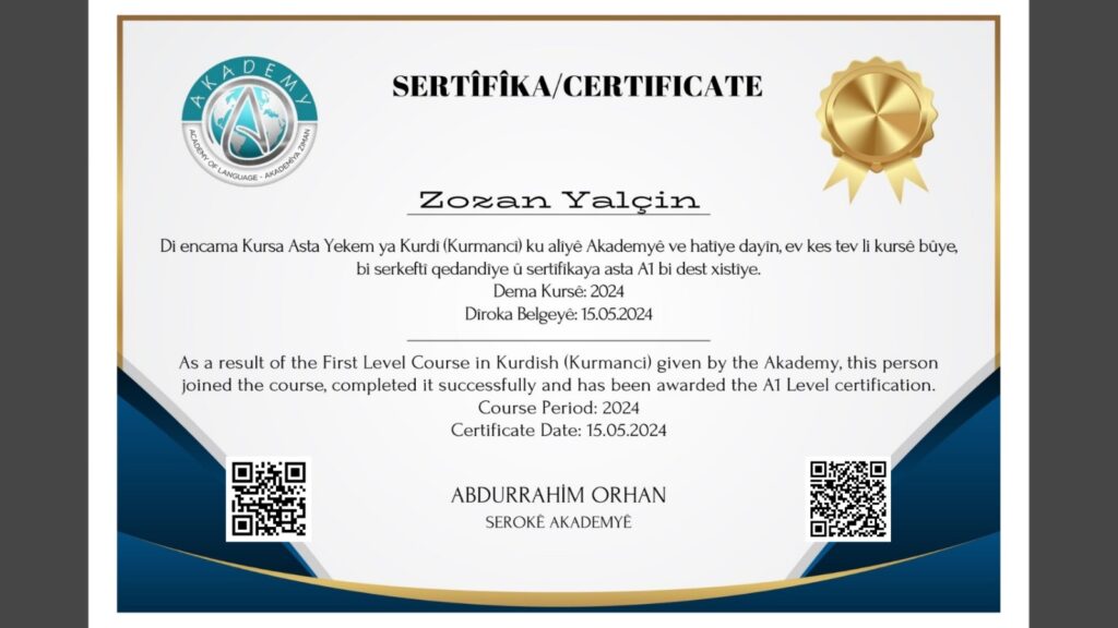 Sertîfîka Zozan Yalçin